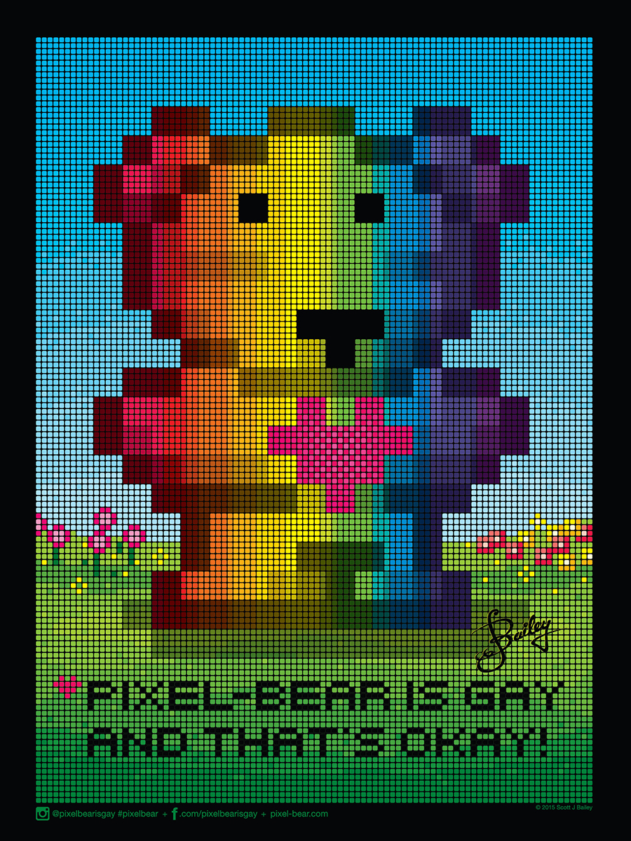 18" x 24" colorful offset lithograph POSTER of Super Rainbow Pixel-Bear!!