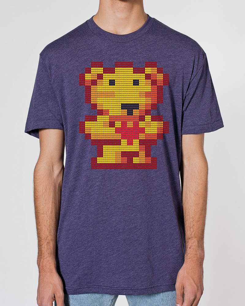 The Original Pixel-Bear design is 10 inches tall and 8.5 inches wide, centered on the front of American Apparel, "Heather Imperial Purple," super-comfy, 50/50 cotton/poly blend crew neck tee; available in sizes XS, S, M, L, XL & 2XL.