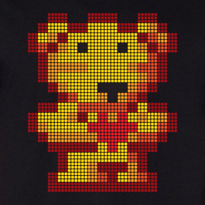The Original Pixel-Bear design is 10 inches tall and 8.5 inches wide, centered on the front of American Apparel, "Black," super-comfy, 100% cotton crew neck tee; available in sizes XS thru 5XL. (4XL & 5XL are printed on Gildan tees)